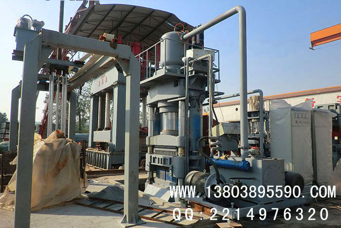 原料處理完之后,料箱里的物料經(jīng)過(guò)推拉缸的作用在主機(jī)模框里來(lái)回移動(dòng),提高物料的均勻度,由主機(jī)高壓壓制成型,成型后由機(jī)械手直接碼垛至蒸養(yǎng)小車。